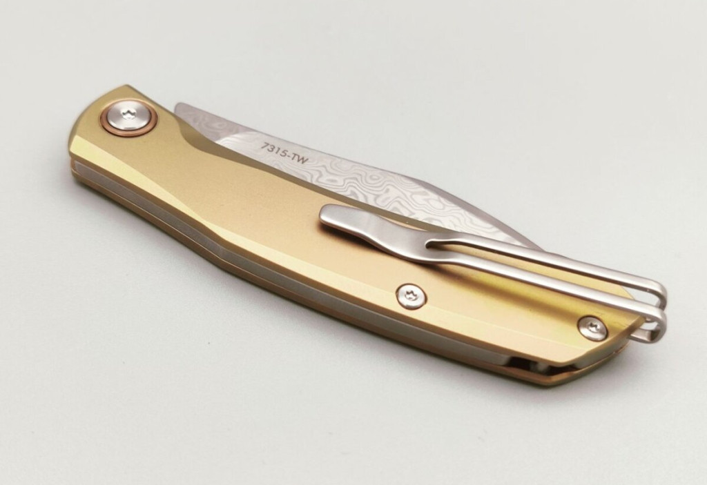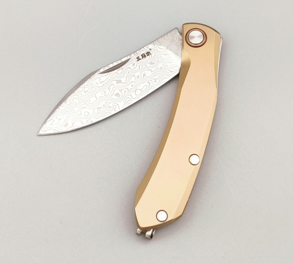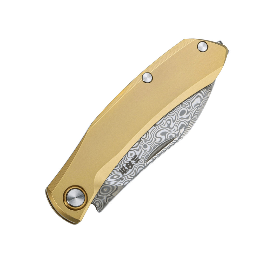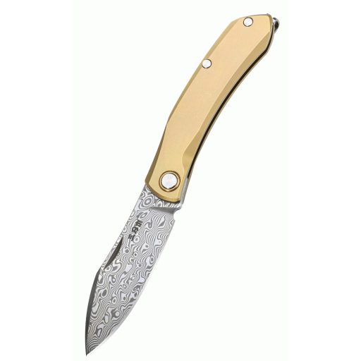 A kés damaszkuszi acélból készült pengével rendelkezik, amely híres rendkívüli szilárdságáról, kopásállóságáról és esztétikus mintázatáról. A penge drop point kialakítású, vagyis enyhén ívelt hegye sokoldalúan alkalmazható, mind vágáshoz, mind precíz munkához. A titán markolat erős, korrózióálló és könnyű, amely kényelmes fogást kínál hosszabb használat során is. A kés slipjoint mechanizmussal működik – ez a rugós rendszer zár nélküli biztonságot ad, a klasszikus bicskák hagyományát követve. A megfordítható zsebcsipesz diszkrét és kényelmes hordást tesz lehetővé, így a kés mindig kéznél van, akár hétköznapi feladatokra, akár kültéri használatra.