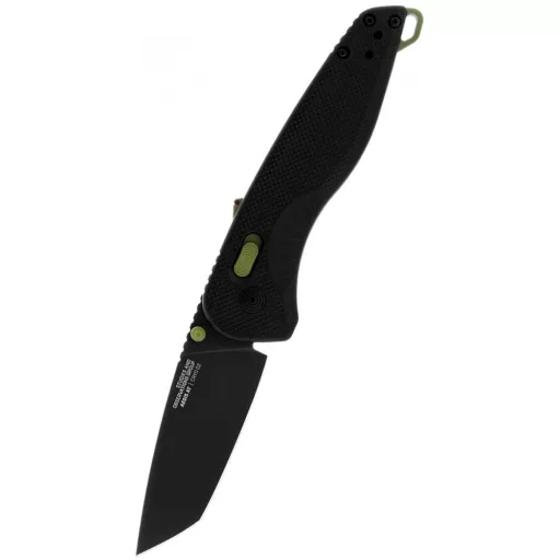 Markolata üvegszál erősítésű nylon ergonómikus markolatmintával, kétkezes innovativ AT-XR zárszerekezettel szerelt, pengéje Cryo D2 fekete csillogásmentes bevonattal.