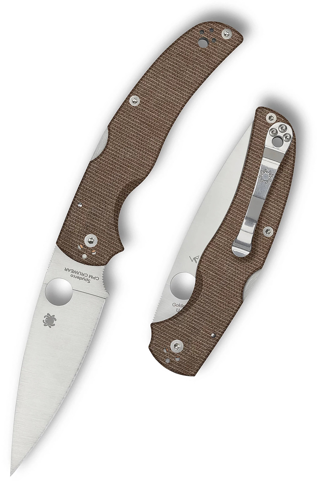 A Spyderco Native Chief Brown Canvas Micarta CPM Cru-Wear pengéje a porfémkohászati eljárással készült CPM Cru-Wear szerszámacélból (speciális eljárással finomított acél, amely a szén és vanádium arányának köszönhetően rendkívüli szívósságot és éltartást biztosít) készült. Ez a különleges anyag garantálja, hogy a vágóél még intenzív munka során is megőrizze borotvaéles teljesítményét. A 104 milliméteres pengehossz és a Full-flat grind (a pengeháttól a vágóélig tartó folyamatos, egyenletes elvékonyítás) profil páratlan metszési hatékonyságot és tiszta vágásokat tesz lehetővé minden anyagban, legyen szó finom munkáról vagy durvább bevetésről. A 3,2 milliméteres pengevastagság ideális stabilitást nyújt a hegyig, miközben a selyemfényű felületkezelés (satin finish) eleganciát kölcsönöz az eszköznek. A gyors használatbavételt a Trademark Round Hole™ (a pengébe fúrt kerek nyílás a hüvelykujj számára) biztosítja, amely akár kesztyűben is egyszerű és intuitív egykezes nyitást tesz lehetővé. A Spyderco Native Chief Brown Canvas Micarta CPM Cru-Wear minden millimétere a professzionális felhasználást szolgálja, a precíz hőkezeléstől kezdve a pengehát rovátkolásáig, amely stabil támasztékot nyújt a hüvelykujjnak a precíziós vágások során. Ez a penge nem ismer akadályt, és a legzordabb körülmények között is megbízható társ marad.