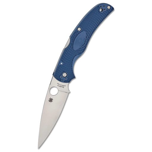 A teljesen sík köszörülésű, szatén felületű penge egy precízen megmunkált hátsó zármechanizmussal van kombinálva, amely egy bélés nélküli, üvegszál-erősítésű nylon (FRN) markolatban kapott helyet. A markolat öntött műanyag, amely a Spyderco CPM S110V családjára jellemző különleges kék árnyalatban készült. Bi-Directional Texture mintázata biztos fogást garantál, még nedves körülmények között is. A kés négy pozícióban felszerelhető zsebklippel rendelkezik, amely teljes konfigurálhatóságot biztosít a felhasználó számára.