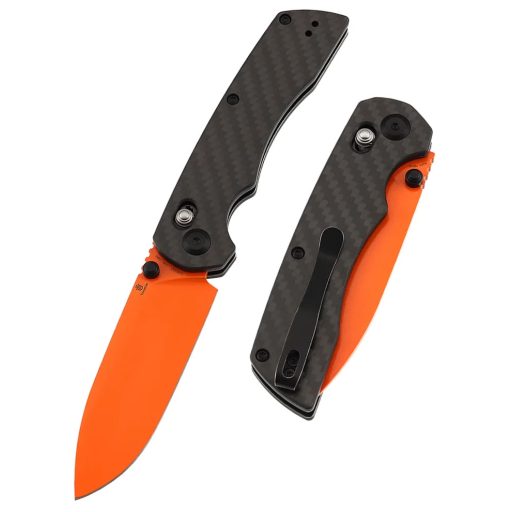 A markolat egy innovatív anyagkombináció, ahol a Twill Carbon Fiber (átlós szövésű, fonott mintázatú szénszál, amely rendkívül könnyű és erős) prémium esztétikája találkozik a fekete G10 (nagy nyomáson préselt üvegszálas kompozit, amely szinte elpusztíthatatlan) rendkívüli szívósságával. Ez a hibrid megoldás nemcsak látványos vizuális textúrát ad, hanem biztosítja azt az érdesebb felületet is, amely nedves vagy izzadt kézzel történő használat esetén is csúszásmentes fogást és maximális kontrollt garantál. A biztonságos és élvezetes használatért a modern Cross-Bar Lock (kétoldalról kezelhető, rugós feszítésű tolózár) felel, amely megbízhatóan rögzíti a pengét nyitott állapotban, és lehetővé teszi annak villámgyors zárását anélkül, hogy a felhasználó ujjai az él útjába kerülnének. A nyitási mechanizmus a pengén elhelyezett Thumb Stud (hüvelykujjas nyitószem) segítségével működik, amely a belső golyóscsapágyas rendszernek (a súrlódást minimalizáló kisméretű acélgolyók a tengely körül) köszönhetően súrlódásmentes és rendkívül sima egykezes nyitást tesz lehetővé minden helyzetben.