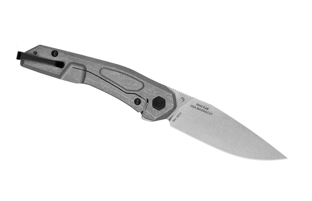 A markolat kialakításánál a súlycsökkentés és a szerkezeti integritás volt az elsődleges szempont. A ZERO TOLERANCE Original MagnaCut 0545 elülső oldala könnyű és rendkívül erős szénszálas (Carbon Fiber) panelből készült, amely modern és technikai megjelenést kölcsönöz a késnek. A markolat hátoldala masszív titán (Titanium) ötvözet, amelybe integrálták a rendkívül biztonságos Frame Lock (a markolat egyik része közvetlenül rögzíti a pengét nyitott állapotban) zárszerkezetet. A zár hosszú élettartamát és a pontos illeszkedést a beépített edzett acél betét (lockbar insert) garantálja, amely megakadályozza a fémek közötti tapadást és kopást. A ZERO TOLERANCE Original MagnaCut 0545 markolata rendkívül vékony profilú, mégis kényelmes és biztos fogást nyújt, köszönhetően az ergonomikus kontúroknak. Ez az anyagkombináció teszi lehetővé, hogy a bicska szerkezete merev maradjon a legnagyobb igénybevétel mellett is, miközben a súlya minimális szinten marad.