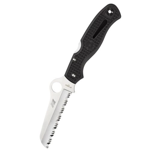 A SPYDERCO Atlantic Salt egy kimondottan vízi környezetre tervezett zsebkés, amely korrózióálló H-1 acél fogazott pengével rendelkezik, ideális sós vízben történő használatra. A sheepsfoot pengeforma biztonságos vágást tesz lehetővé, míg a fekete FRN markolat könnyű, tartós és csúszásmentes fogást kínál. A beépített shackle key hajósok számára hasznos funkció, míg az átszerelhető titán zsebklipsz kényelmes hordozhatóságot biztosít. Kompakt és sokoldalú, tökéletes választás kalandoroknak és hajósoknak egyaránt.