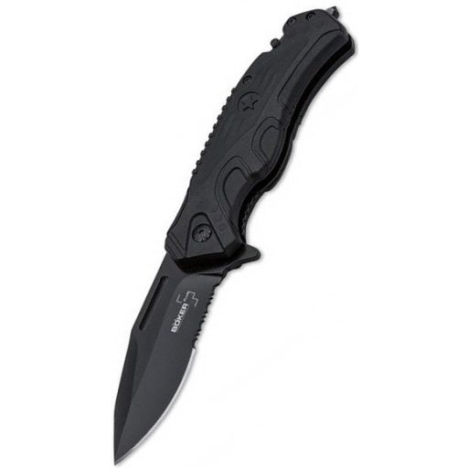 Markolata üvegszálerősítésű műanyag gumi betétekkel, mely acél betétekkel van megerősítve. Fogása erős és biztonságos. Markolata végén üvegtörő található valamint kihajtható övvágó. Elsősorban jobb kezeseknek ajánlotta keresztzár illetve a klipsz kialakítása miatt. Klipsz leszerelhető. Csomagolásban gyöngyvászon táskát is mellékelünk.