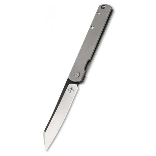 A BÖKER PLUS Zenshin továbbra is kellemesen lapos kivitelű maradt ami észrevétlen bújhat meg a nadrágzsebben. A penge 440C rozsdamentes acélból készült két tónusú felületkialakítással és lapos köszörüléssel. Meghosszabbított szárral úgynevezett friction nyitásmóddal rendelkezik de a pengét a markolatba épített framelock zárszerkezet rögzíti.