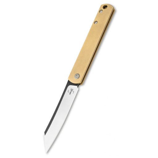 Az elegáns BÖKER PLUS Zenshin a világhírű Higonokami zsebkésekre emlékeztet, amelyeket 1896 óta gyártanak a japán Miki városában. Történelmi modelljeivel ellentétben azonban az zsebkés nyélteste nem egy darab hajtogatott acélból készült hanem két sárgaréz markolatpanelből ami matt kőmosott felületkezelést kapott.
