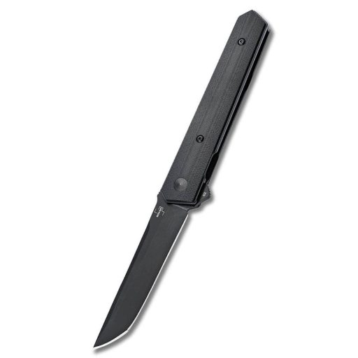 A golyóscsapágyazott D2 acélból készült Tanto penge flipperrel könnyedén nyitható és megbízható linerlock zárja biztosítja a stabilitást. A penge egyenes gerince és felívelő éle ideális precíz vágásokhoz. A könnyű, fekete G10 markolat elegáns, taktikai megjelenést ad a késnek, amely egyaránt alkalmas mindennapi használatra és gyűjteményekbe. A karcsú kialakítást egy levehető, mélyen hordható klipsz és egy minőségi nylon tok egészíti ki.