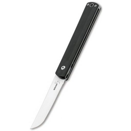BÖKER PLUS Wasabi karcsú felépítésű. és könnyűszerkezetét kiegészíti az egyszerű dizájn és a klasszikus japán formavilág. A golyóscsapággyal elátott penge flipper segítségével nyitható. Zárszerkezete slipjoint.