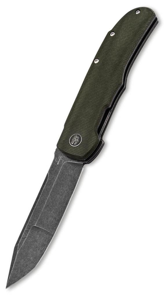 A markolat kialakítása a funkcionalitás és az esztétika tökéletes egyensúlya: az olívazöld Micarta panelek nemcsak rendkívül tartósak és könnyűek, hanem nedves vagy sáros körülmények között is biztos, csúszásmentes fogást garantálnak minden körülmény között. Az ergonómia Bob Terzuola évtizedes tervezői filozófiáját tükrözi, ahol a markolat ívei természetesen követik a kéz formáját, elkerülve a „hot spotokat” a huzamosabb használat során a terepen. A szerkezet alapja egy stabil Linerlock (keresztzár), amely holtjátékmentesen és biztonságosan rögzíti a pengét nyitott állapotban, kizárva a véletlen becsukódás lehetőségét komolyabb terhelés alatt is. Vizuális és technikai fókuszpont a markolaton elhelyezett rejtett tengelycsavar, amelyet a híres Terzuola-logo, a sárkányfej díszít, hangsúlyozva a modell exkluzivitását. A hordozhatóságot egy diszkrét zsebklipsz teszi teljessé, a mellékelt minőségi nylon tok pedig extra védelmet nyújt a tárolás és szállítás során, biztosítva az eszköz hosszú élettartamát és megóvva az anyagokat a sérülésektől. Minden egyes alkatrész illesztése és megmunkálása a legmagasabb minőségi elvárásoknak megfelelően készült.