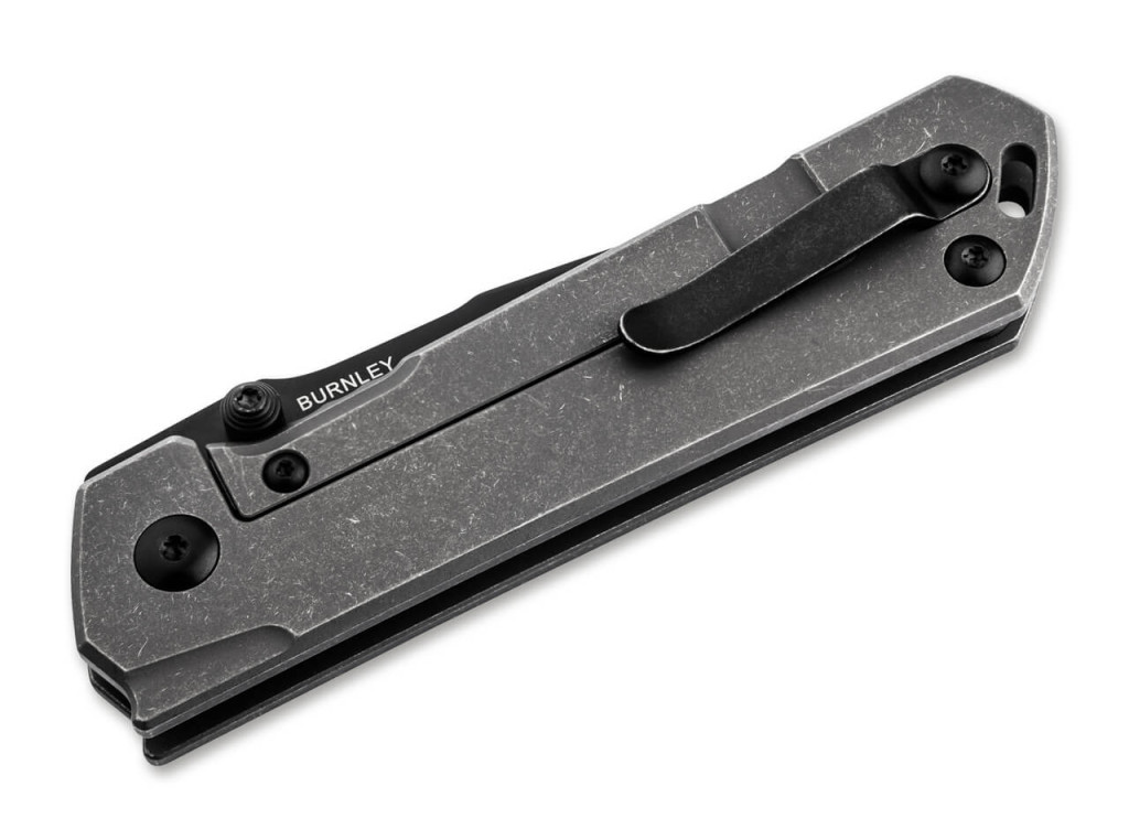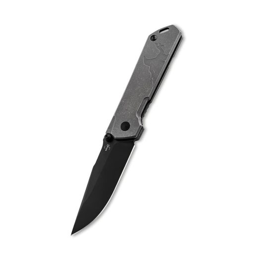 Ez a modell drop point pengeformával rendelkezik, ami egy stabil és sokoldalú kialakítás, különösen jól alkalmazható mindennapi feladatokra vagy precíz vágási munkákra egyaránt. A penge CPM-S35VN acélból készült, amely az egyik legjobb porvasasított acélminőség: kiváló él-tartást, korrózió-ellenállást és mechanikai szilárdságot kínál. A penge felületét fekete PVD-bevonat fedi, ami diszkrét, taktikai megjelenést biztosít, és segít csökkenteni a fényvisszaverődést. A titanium markolat stonewash felülettel érkezik, amely nem csak esztétikus, hanem tartós és kényelmes fogást is ad, még nedves körülmények között is.