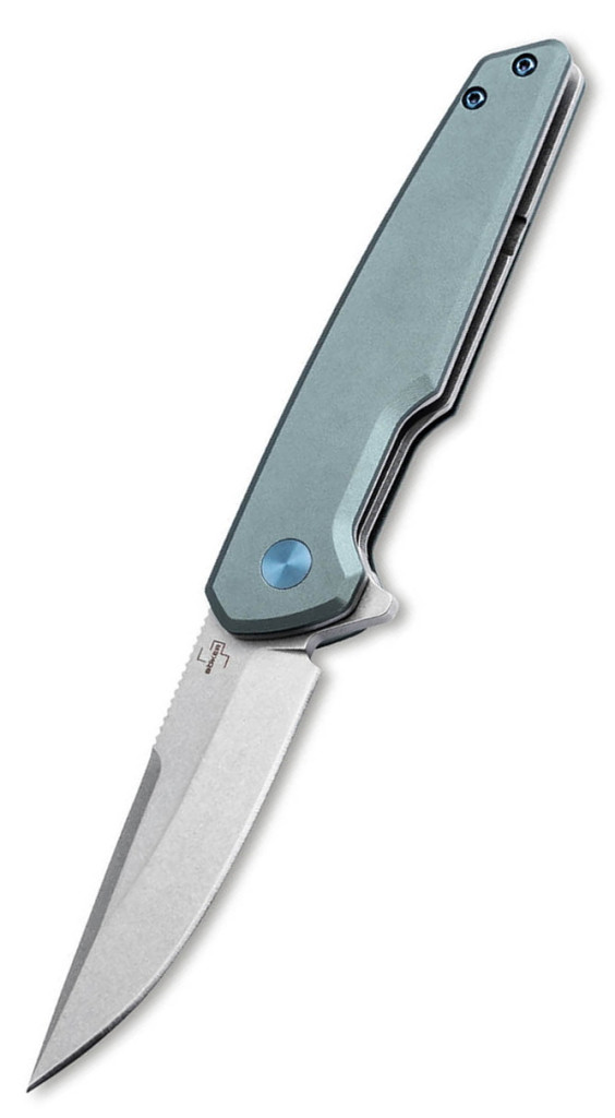A markolat kialakításánál a súlycsökkentés és a tartósság volt az elsődleges mérnöki szempont. A panelek nagy szilárdságú 6061-T6 alumíniumból készültek, amely anyag a repülőgépgyártásból ismert szívósságáról és alacsony súlyáról. A markolat szürke alapszíne és a „folyékony” vonalvezetése tökéletes kontrasztot alkot a kékre anódozott technikai elemekkel – ideértve a tengelycsavart, a rögzítőcsavarokat és a zsebklipszet –, amelyek egyedi, modern karaktert kölcsönöznek a késnek. A penge rögzítéséért egy precízen illesztett, megbízható Linerlock (keresztzár) felel. Ez a mechanizmus acél belső linereket használ, amelyek határozott kattanással rögzítik a pengét nyitott állapotban, minimalizálva a véletlen becsukódás kockázatát.