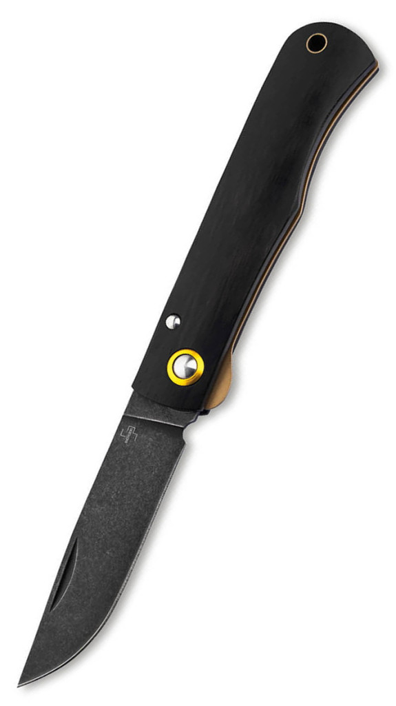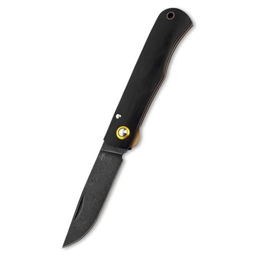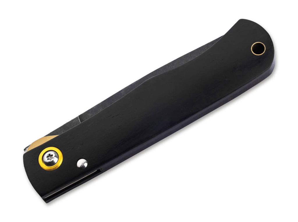 A markolat alapanyaga a nemes ébenfa (Ebenholz), amely sűrű, nehéz szerkezete és mélyfekete színe miatt a luxuskategóriás kések egyik védjegye. Az ébenfa használata az, ami a „rusztikus” formát „gentleman” szintre emeli: a markolat selymes fénye és hűvös tapintása azonnali minőségérzetet ad a tulajdonosnak. Ebben a modellben találkozik a múlt és a jelen: bár a forma és a nyitási mód hagyományos, a szerkezetbe egy modern Linerlock (keresztzár) lett integrálva.