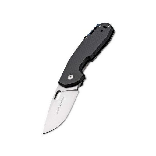 Az arányaiban széles egyenes leélezésű penge mely N690-ból készült és kőmosott felületkezelést kapott egyszerre erős és könnyen írányítható és használható. Markolata mély ujjvájatot kapott ami biztonságos és egyben kényelmes fogást tesz lehetővé. A prémium designt a titán távtartóban kialakított zsinórfurat teszi különlegessé. A pengét framelock zárszerkezet rögziti. és folder viselését zsebklipsz könnyíti meg.