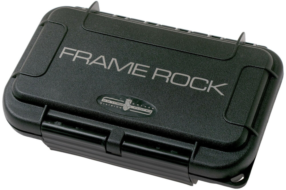 A Frame Rock mindössze 270 g súlyú, ami viszonylag könnyű egy ilyen masszív késhez képest. ABS műanyag dobozban szállítjuk.