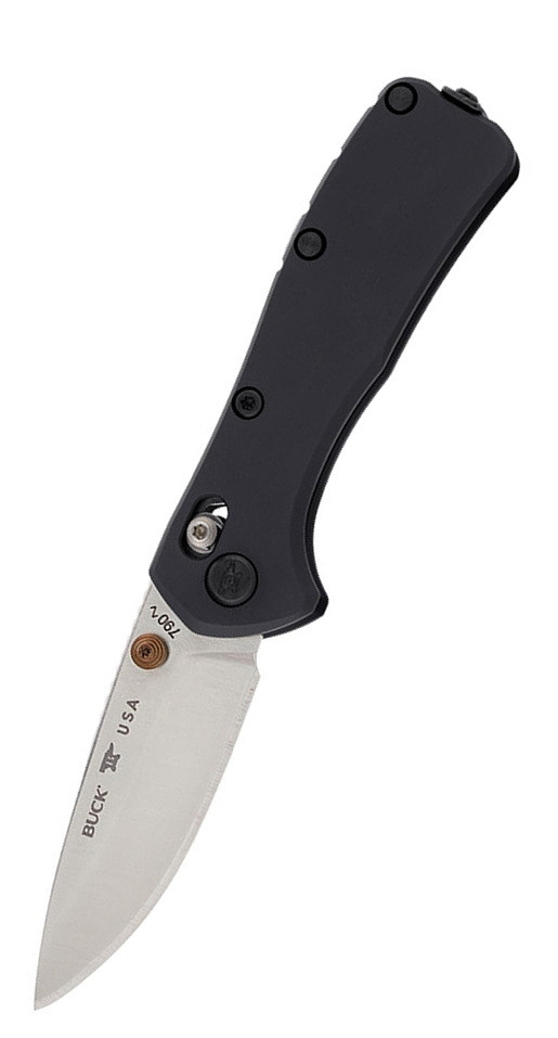 A gyártó specifikációja szerint a Buck 790 Mini Range Elite pengéje 66,7 mm hosszú, drop-point kialakítású és CPM MagnaCut acélból készül, amelyet a gyártó az egyik legkorszerűbb porkohászati acélként jelöl meg, kiemelkedő él-tartással és korrózióállósággal. A penge felületkezelése szatén, amely visszafogott fényvisszaverést és esztétikailag is letisztult megjelenést ad. A kés teljes hossza nyitva 158,8 mm, zárt állapotban pedig 92,1 mm, ami jól hordható zsebkésméretet eredményez. A markolat anodizált alumínium, amely könnyű, mégis nagy szilárdságú, a felületkezelés pedig ellenállóbbá teszi a mindennapi kopással szemben. A zármechanizmus Crossbar Lock, amely stabil pengerögzítést biztosít, és kétkezes használatra is kedvező. A nyitás egyoldali nyitószeggel történik, a klip pedig deep-carry tip-up kivitelű. A kés tömege mindössze 65 g, így hosszabb ideig is kényelmesen hordható. A modell az Egyesült Államokban készül, a gyártó „Made in USA” megjelölésével.