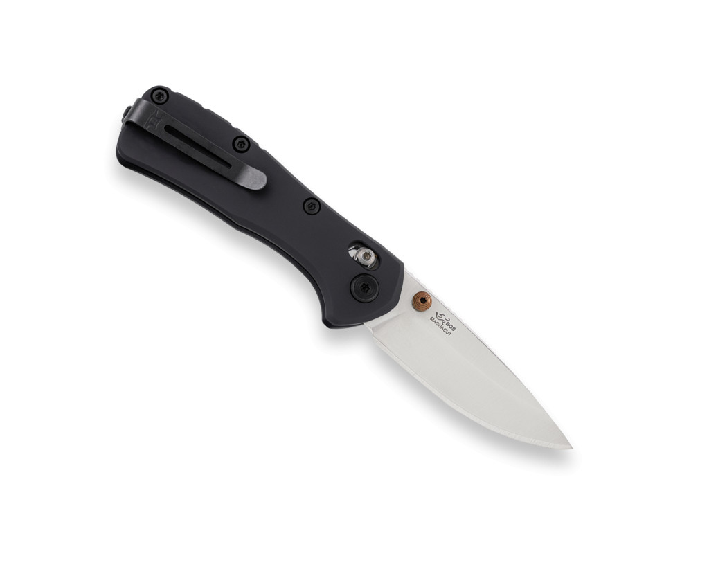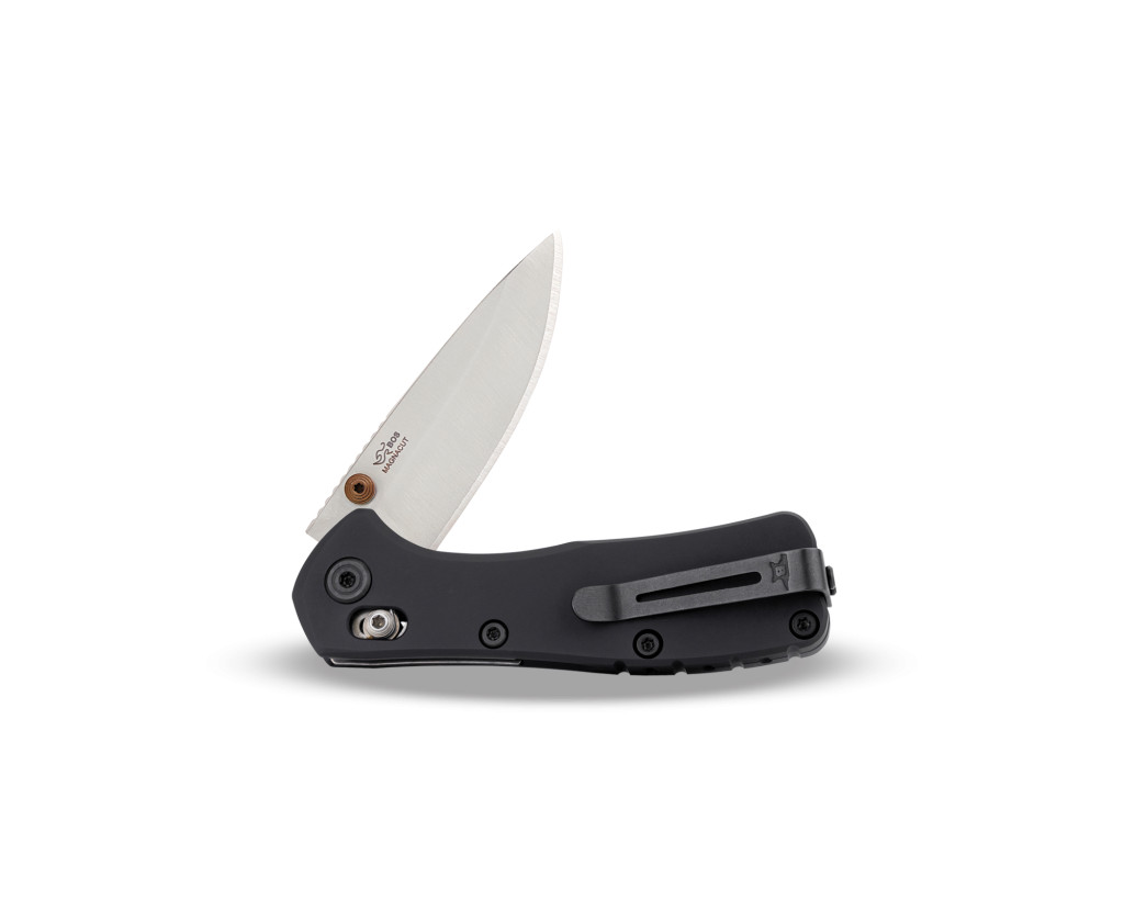 A 790 Mini Range Elite modell pengéje CPM MagnaCut acélból készült, amely a gyár szerint a korszerű prémium-fémek közé tartozik: kiváló él-tartósságot és korrózióellenállást kínál. A markolat anyaga anodizált alumínium, fekete felületkezeléssel — így a konstrukció egyszerre könnyű és tartós. A zármechanizmus Crossbar Lock típusú, stabil rögzítést biztosít használat közben. A nyitás egyoldalú thumb-stud (ujj-kovájás) segítségével történik, és a zsebklip tip-up kivitelű. A pengeforma drop-point, sima élkiképzéssel (plain edge) készült — a gyártói specifikáció szerint.
