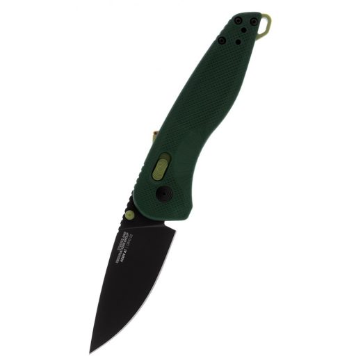 Markolata üvegszál erősítésű nylon ergonómikus markolatmintával, kétkezes innovativ AT-XR zárszerekezettel szerelt, pengéje Cryo D2 fekete csillogásmentes bevonattal.