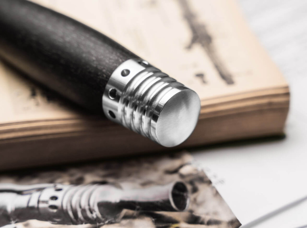 Ez a kés egy fixpengés tőr (dagger) kialakítású modell, amely doppelschneidiger / kétélű dolchklinge profillal rendelkezik — vagyis a penge mindkét oldalán éles, ami jellemző a klasszikus tőrformákra és a gyűjtői darabokra. A penge anyaga Damaskus‑acélból készül, amelyet egy tapasztalt kovácspartner formál a penge szívévé, így a jellegzetes Low Layer Raindrop damaszkolt mintázat gyönyörűen látszik a felületen, miközben kiváló mechanikai tulajdonságokat ad a késnek. A penge mindkét oldalán diszkrét hollow grind (hajlított vékonyított rész) található, ami nem csak vizuálisan vonzó, hanem funkcionálisan is segíti a vágóél kialakítását. Ehhez társul a vastag, masszív 5 mm‑es pengevastagság, amely jelentős tartósságot és stabilitást biztosít még komolyabb használat esetén is, legyen szó bemutatásról, gyűjtésről vagy dekoratív kiállításról.