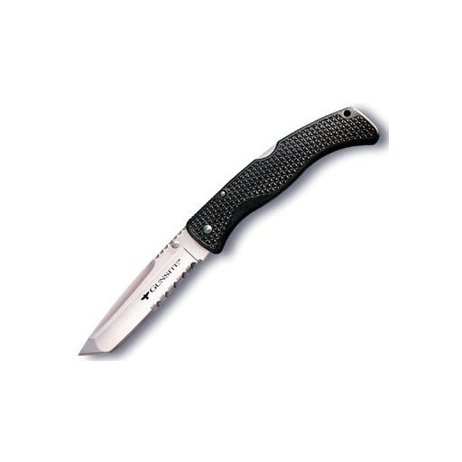 A Cold Steel egyik telitalálata a Gunsite folder. a híres Gunsite Training Center (a lõfegyverhasználat oktatásának egyik vezetõ amerikai intézete) elsõ jóváhagyott és hivatalos kése. Ezek a körültekintõen megtervezett tanto folderek olyan tiszteletet parancsolóak. akárcsak a Gunsite Center közismert holló-védjegye. Éle fele-fele arányban sima és fogazott. zárszerkezete kimagaslóan erõs; a nagyobb modellé több mint 60 kilót meg tud tartani – a Gunsite folderek számos taktikai feladatra alkalmasak. Akárcsak a Voyagerek. ezek is teljes Zytel nyéllel vannak ellátva. és egy integrált zsebcsíptetõ található rajtuk. hogy hordásuk könnyû legyen.