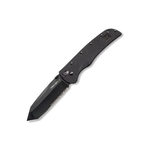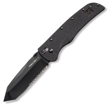 Cold Steel is famous for raising the bar in the knife industry and their Recon 1 tactical folders are setting a standard that's hard to beat. Why? Because they are as tough as nails and will cut like a chain saw! Every facet of their construction has been over engineered to make them as strong. durable and effective as humanly possible. The blades are made out of AUS 8A stainless steel that's been vacuum heat treated and sub zero quenched. and the handles feature G-10 laminate scales. massively reinforced by heat treated steel liners and five locking bolts. To compliment their super tough blades and handles. they each feature our revolutionary Ultra Lock (patent pending). which practically precludes lock failure. To compliment their tactical mission we have given each blade a tough black Teflon finish. Their testing has shown this coating or finish offers three major advantages for use on tactical blades. The first is; it is highly resistant to scratches and abrasions while keeping rust at bay. The second is; it eliminates glare and light reflections which may give its user away. The third is; it's a superior lubricant. which causes the blade to slip through even tough material with markedly less friction. This means you can cut deeper and far longer than with a non-Teflon coated blade. To make the Cold Steel Recon 1 as easy to carry as possible. they have equipped each knife with a small. extra strong pocket clip. This clip is completely ambidextrous so lefties take note. What's more. its diminutive size doesn't abrade and irritate the palm under protracted use like a larger clip would.