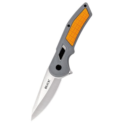 A Buck Hexam egy praktikus, tartós zsebkés, amelynek markolata injektált műanyagból készült, texturált felülettel, biztos fogást és alacsony súlyt biztosít. A nyitási mechanizmus külön figyelmet érdemel: SafeSpin technológia – olyan rendszer, ami a flipper (pengefelszökkenő nyitófül) és a rotátor segítségével lehetővé teszi a penge érintés nélküli, gyors és biztonságos nyitását. A zármechanizmusként működő button lock (gombos zár) biztosítja, hogy a penge mind nyitott, mind zárt állapotban stabilan marad. A drop point pengetípus (lefelé ívelő hegy) praktikus minden napi használatra, legyen szó csomagbontásról vagy kisebb vágási feladatokról. A penge anyaga 7Cr17MoV rozsdamentes acél, amely jó kopásállóságot és éltartást kínál.