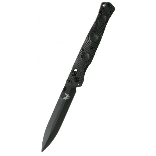 BENCHMADE Socp Tactical folder nyitópöcök segítségével nyitható mely mindkét oldalról könnyedén elérhető. Kinyitása után a D2 acélból készült, tükröződésmentes feket bovonatú pengét a Benchmade által szabadalmaztatott AXIS lock zárszerkezet rögzíti.