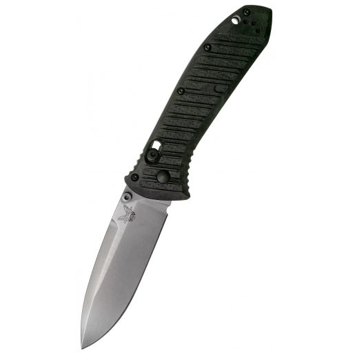 A markolat Carbon Fiber-Elite-ből készült, nem pedig alumíniumból, amit a korábbi verzióknál láttunk. A CF-Elite egy viszonylag új anyag, amely polimert tartalmaz szénszálas megerősítéssel. Sziklaszilárd anyag, amely eredetileg az autó- és repülőiparban volt használatos. A CF-Elite szinte semmit sem nyom, és így a Presidio II verziója könnyebb, mint elődei. A Presidio II-t a nyitópöcok segítségével nyithatod és nyitott állapotában a Benchmade által szabadalmaztatott Axis lock tartja a pengét a helyén.