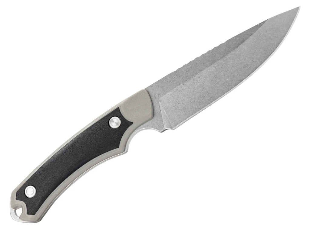 A kés pengéje 420HC rozsdamentes acélból készül, amelyet a gyártó kifejezetten úgy hőkezel, hogy jó korrózióállóságot és megfelelő éltartást biztosítson a mindennapi kültéri feladatokhoz. A penge drop-point kialakítású, sima élkiképzéssel, így jól irányítható és széleskörű felhasználást tesz lehetővé, legyen szó vadászatról, túrázásról vagy általános terepmunkáról. A markolat üvegszállal megerősített nylon (GFN) és Versaflex gumibetétek kombinációjából áll; ez a megoldás jó tapadást és biztonságos fogást ad száraz és nedves körülmények között is. A konstrukció teljes tangos felépítésű, így a penge anyaga a markolatban végigfut, ami növeli a tartósságot. A gyártó ehhez a modellhez gyári poliészter tokot mellékel, amely övre rögzíthető, stabil hordást biztosít, és a terepen történő gyors hozzáférést is megkönnyíti.