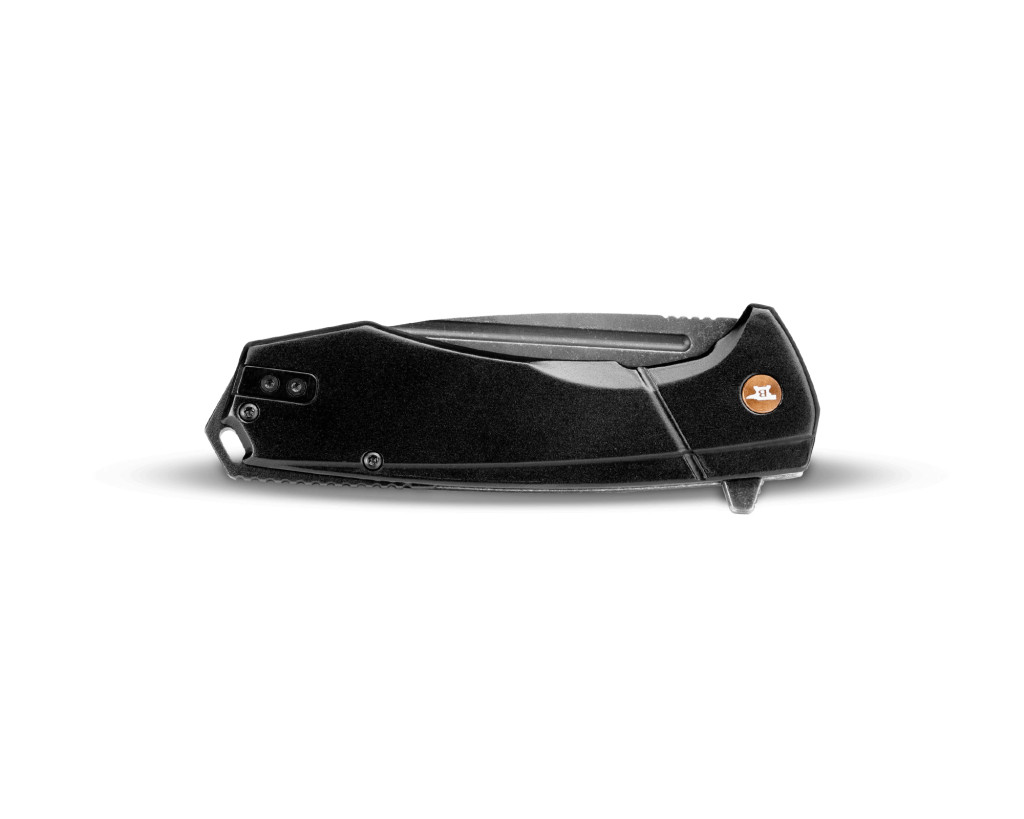 A Ruckus erőteljes megjelenése mögött praktikus és megbízható konstrukció áll. Drop point pengéje sokoldalúan használható vágási feladatokra, a D2 acél pedig nagy kopásállóságot és éltartást biztosít, ideális a mindennapi használathoz. A tumbled black oxide bevonat matt, sötét felületet eredményez, amely nem tükrözi vissza a fényt, így diszkrétebb megjelenést nyújt. A penge gyorsan és könnyen nyitható a flipper segítségével, amely lehetővé teszi az egykezes használatot. A frame lock zármechanizmus biztonságosan rögzíti a pengét a nyitott állapotban, míg a mélyen ülő, cserélhető zsebklipsz biztosítja a kényelmes hordást, akár jobb-, akár balkezes felhasználók számára. A markolat anyaga anodizált alumínium, amely könnyű, mégis erős, biztosítva a hosszú élettartamot.