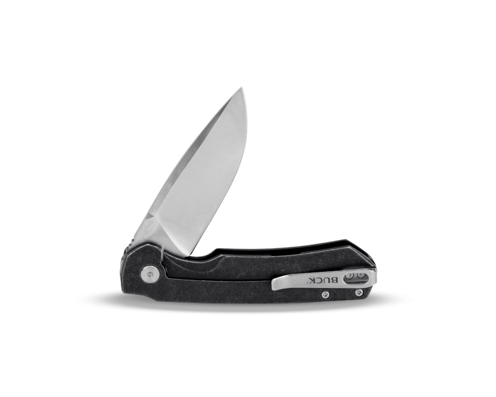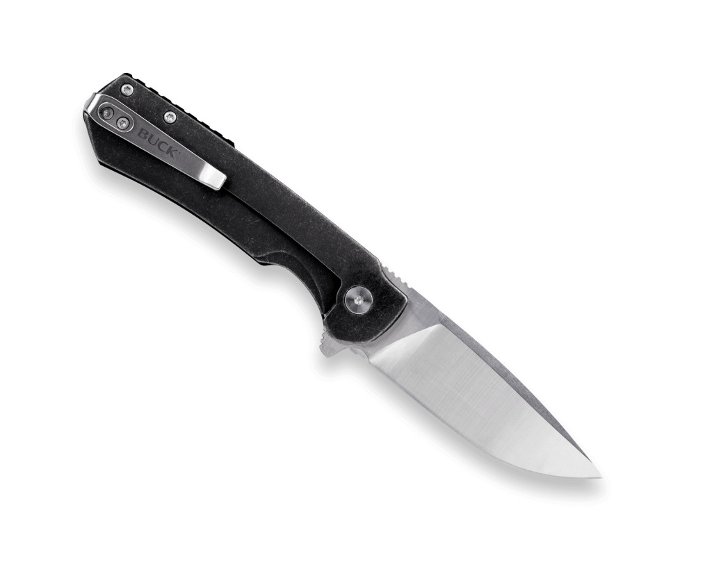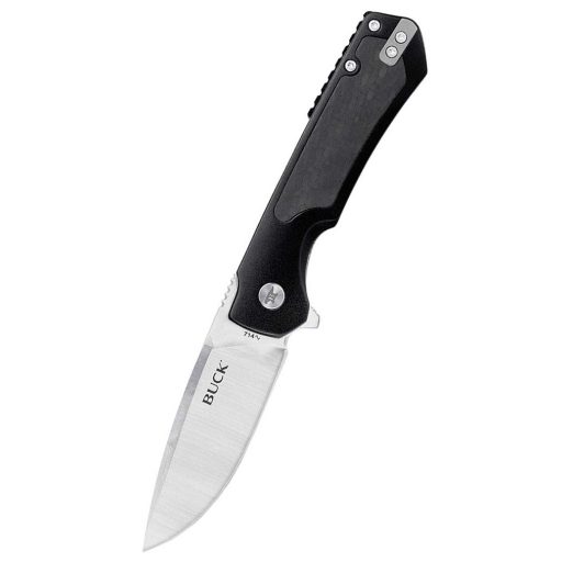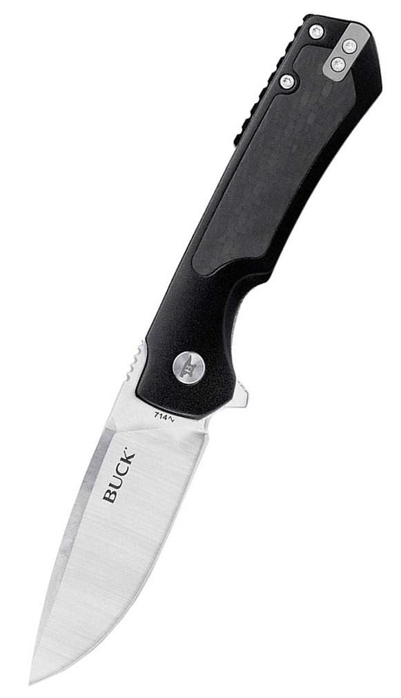 A Buck 714 Stinger teljes hossza 18,42 cm, amely optimális méretet biztosít a kényelmes mindennapi hordáshoz. A penge D2 szerszámacélból készült, amely a kiváló éltartás mellett jól ellenáll a kopásnak. A pengeformája drop point, élezése sík köszörülésű (flat grind), ami egyenletes vágást biztosít a teljes él mentén. A nyitás blade flipper segítségével történik, zármechanizmusa frame lock. A markolat anodizált alumínium és karbonszálas betét kombinációjával készül, amely egyszerre könnyű, tartós és esztétikus. A mélyen ülő (deep carry) csíptető jobb- és balkezes használathoz is átszerelhető (reversible), így a kés hordása maximálisan testre szabható. A penge hátán kialakított jimping extra irányítást biztosít precízebb munkáknál.