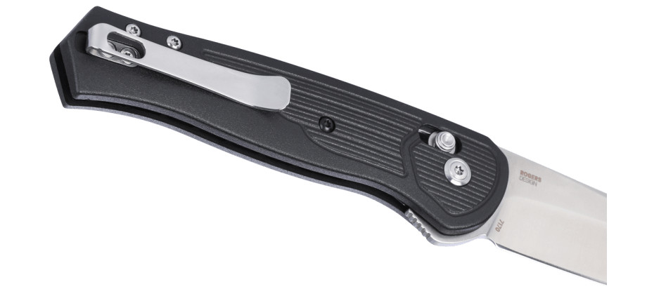 A markolat felépítése a tartósság és a minimális súly jegyében készült, alapanyagként üvegszál-erősítésű nejlont (GRN – egy nagy szilárdságú, hőre lágyuló műanyag kompozit) alkalmaztak a tervezők. Ez az anyag nemcsak rendkívül ellenálló az ütésekkel és a környezeti hatásokkal szemben, hanem lehetővé teszi, hogy a kés összsúlya mindössze 65 gramm maradjon, így szinte észrevétlen marad a zsebben. A biztonságért az intuitív Crossbar Lock felel, amely egy, a markolaton keresztülnyúló acélrúddal rögzíti a pengét nyitott állapotban. Ez a zárszerkezet kiemelkedő biztonságot nyújt, hiszen sziklaszilárd rögzítést garantál, miközben mindkét kézzel rendkívül könnyen kezelhető és zárható. A zárás során a kéz távol marad a penge mozgási útjától, ami jelentősen növeli a használati biztonságot. A markolat formája az ergonómiát (az emberi kéz anatómiájához igazodó kialakítás) helyezi előtérbe, biztosítva a stabil fogást bármilyen szituációban. A 110 milliméteres zárt hossz kompakt méretet eredményez, ami elengedhetetlen a kényelmes viseléshez.