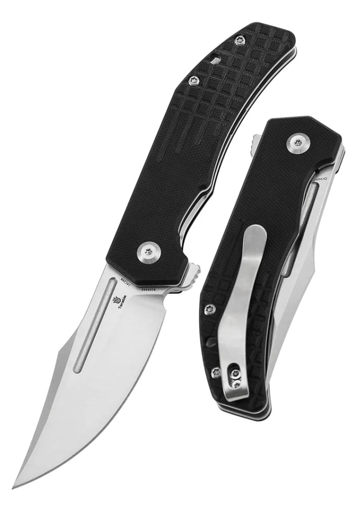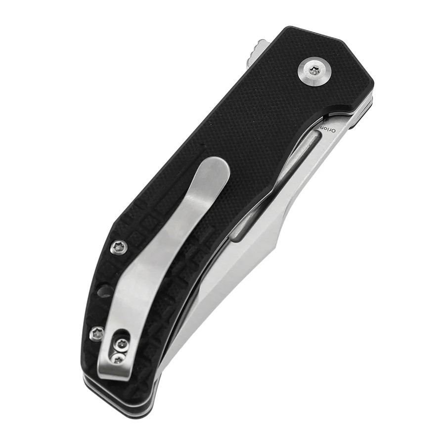Ebben a modellben olyan jellemzők találhatók meg, amelyek a mindennapi hordhatóság és megbízhatóság igényét szolgálják: a penge anyaga 14C28N rozsdamentes acél, amely jó korrózióállósággal és viszonylag könnyű élezhetőséggel rendelkezik. A markolat anyaga G10, amely rétegezett, kötött szálas műgyanta-alapú kompozit, a „frag-pattern” textúrával növelt fogásbiztonsággal. A zárszerkezet liner-lock típusú, amely egyszerre biztosít stabil rögzítést használat közben és egyszerű elengedést. A nyitás flipper tabbal történik, és a penge oldalkivágással is támogatott, így az egykezes nyitás gyors és zavartalan. A penge „clip point” formájú, a markolat visszafogott, hordásra optimalizált — a konstrukció nem túldíszített, a használatra koncentrál.