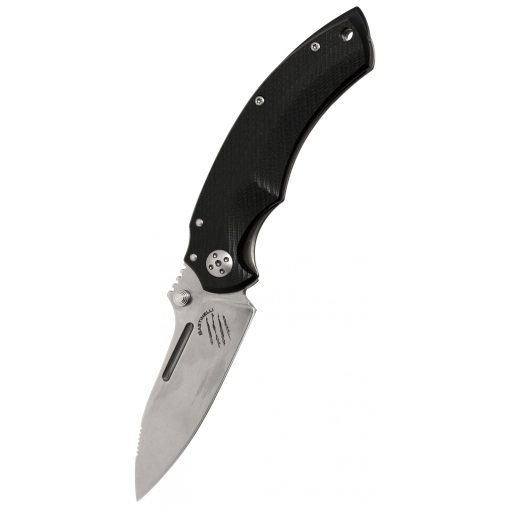 A markolat fekete színű, 3D mart G10 anyagból készült, amely könnyű, tartós és csúszásmentes fogást biztosít. A finoman lekerekített élek és az ergonomikus formatervezés garantálják a kényelmes használatot hosszabb időn át is. A kés kényelmesen illeszkedik a kézbe, stabil fogást nyújt akár védőkesztyűben is.