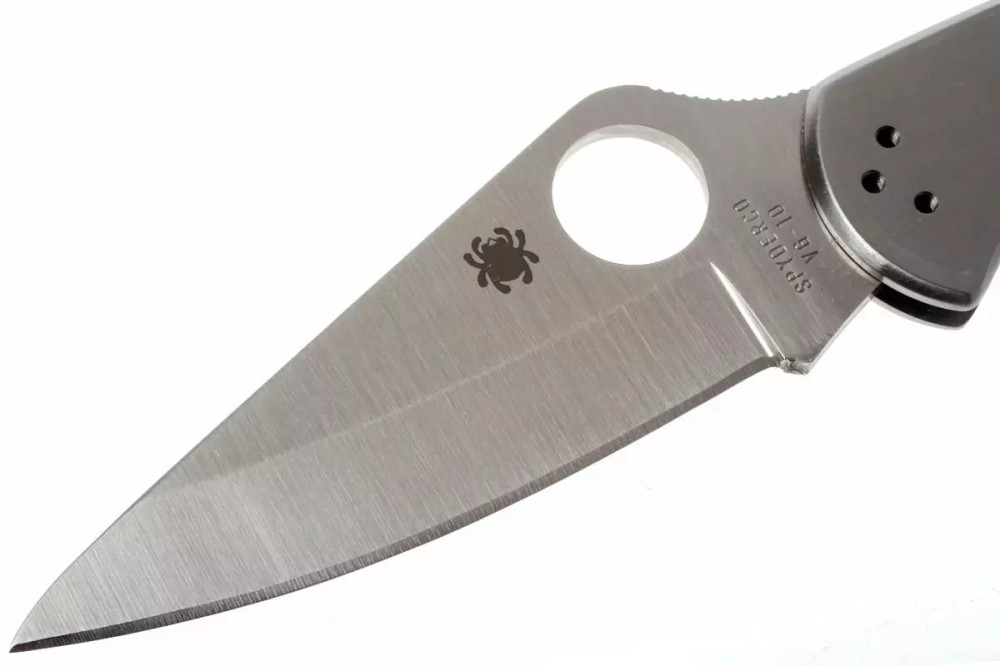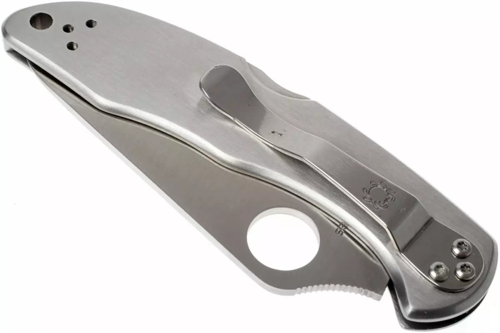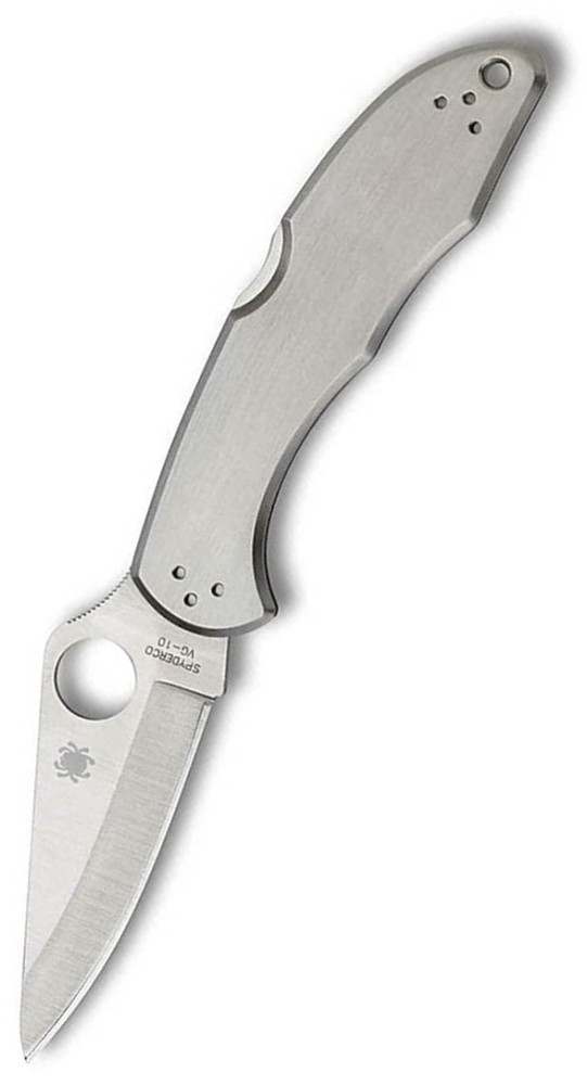 As part of Spyderco's CQI (Constant Quality Improvement) philosophy the C11SS now offers improved ergonomics added to the blade's spine is slip resistant jimping, a larger thumb hole, a stronger thicker tip and a new 4-way clip design (R/L reversible and Tip-up/Tip-down). The saber-ground blade is VG-10 and is available in a PlainEdge, SpyderEdge or CombinationEdge™.