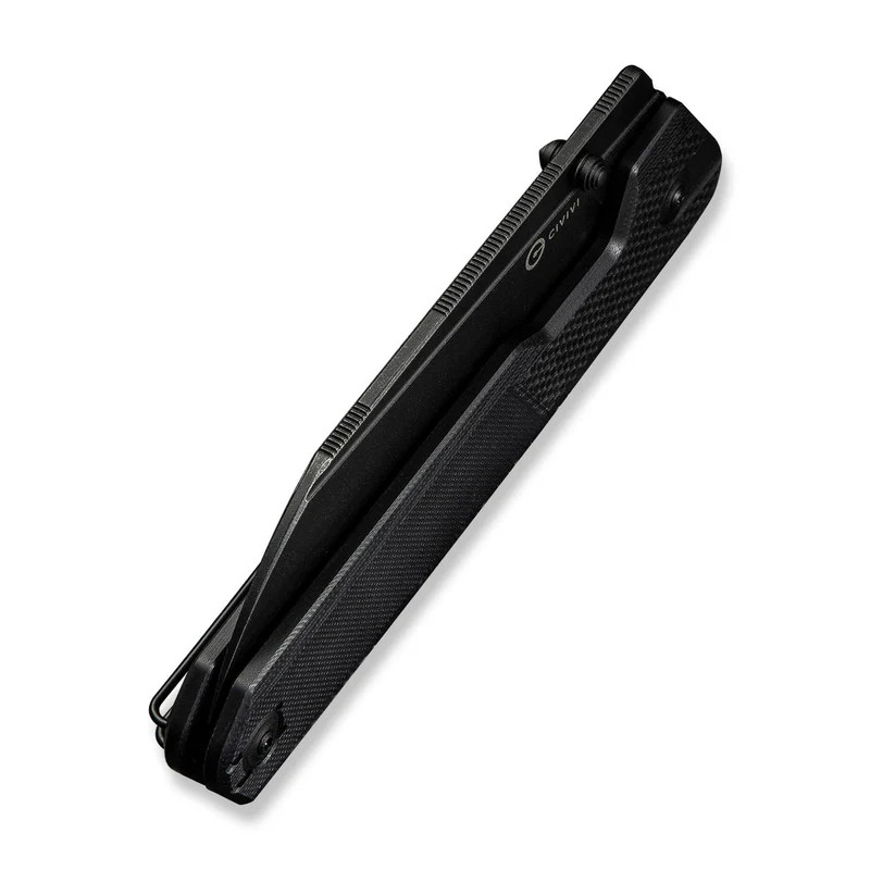A CIVIVI HID G-10 AllBlack zsebkés markolata strapabíró fekete G10 (nagy nyomáson préselt üvegszál-erősítésű műgyanta, amely teljesen érzéketlen a környezeti hatásokra) panelekből épül fel, biztosítva a biztos fogást még nagyobb kezű felhasználók számára is. A kényelmes használatról a 144,7 milliméteres markolathossz és az ergonomikus, tágas kialakítás gondoskodik, amely elegendő helyet hagy a kéznek (knuckle clearance) a vágódeszkán végzett munka során is. A biztonságos rögzítésért a precízen megmunkált Nested Liner Lock (a markolatpanelek közé süllyesztett acél rugós lemez, amely stabilan rögzíti a pengét nyitott állapotban) felel, amely a bicska szerkezeti integritását (stabilitását) szavatolja. A belső rozsdamentes acél linerek (vázlemezek) adják meg a kés masszív alapját, garantálva a hosszú élettartamot a mindennapi EDC (mindennapi hordozásra szánt eszköz) használat során.