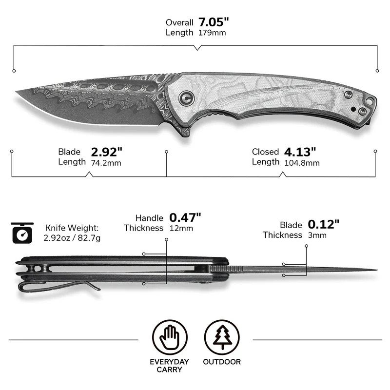 A Civivi Voidflare működése a mérnöki tökéletesség mintapéldája, ahol a caged ceramic ball bearing (kosárba zárt kerámia golyóscsapágyas rendszer, amely minimalizálja a súrlódást a tengely körül a simább nyitás érdekében) rendszer gondoskodik a villámgyors és akadásmentes működésről. A felhasználó kétféleképpen is aktiválhatja az eszközt: a diszkrét Front Flipper (a penge elején található apró nyitófül, amelyre hüvelykujjal nyomást gyakorolva nyitható a kés) vagy a pengébe vágott Thumb Hole (nyitónyílás) segítségével, ami kétkezes sokoldalúságot és élvezetes használatot biztosít. A mindössze 78 grammos súly és a 178 milliméteres teljes hosszúság révén a kés szinte észrevétlen marad a zsebben, így válik ideális EDC (mindennapi hordozásra szánt eszköz) társsá. A hordozhatóságot a mélyen ülő, visszafordítható rozsdamentes acél zsebklipsz (Deep-carry clip, amely lehetővé teszi, hogy a kés mélyen üljön a zsebben) teszi teljessé, amely Tip-up (heggyel felfelé néző) hordozást tesz lehetővé. Minden egyes alkatrész a hosszú élettartam jegyében készült, legyen szó a szürke felületkezelésű vázról vagy a precíz illesztésekről, így a Voidflare generációkon át kiszolgálja tulajdonosát.