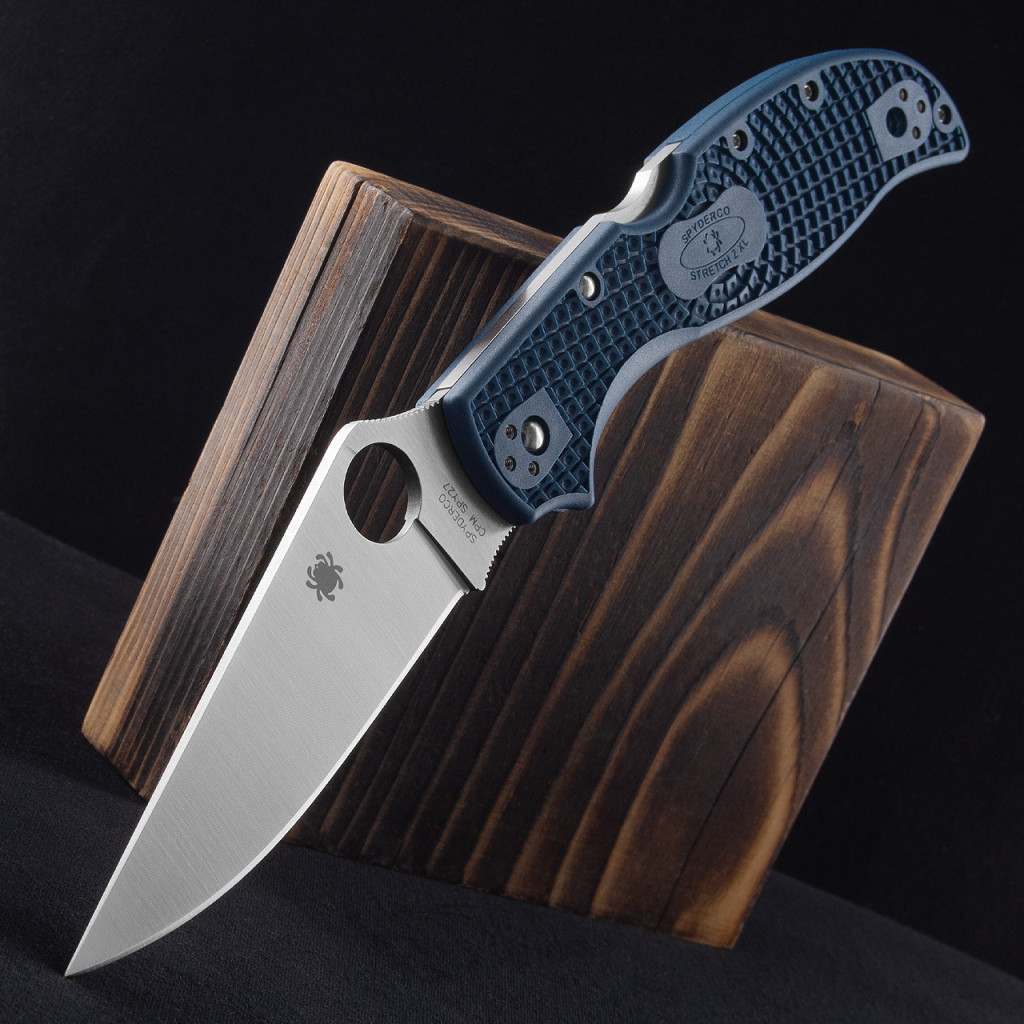 A Stretch™ 2 XL Lightweight pengéje CPM SPY27 acélból készül, amelyet kifejezetten a Spyderco számára fejlesztettek. Ez az acél egyensúlyt teremt a kiemelkedő éltartás, a keménység és a korrózióállóság között. A penge leaf-shaped formája (levél alakú), valamint a full-flat grind (teljes sík köszörülés) rendkívül hatékony vágást biztosít, miközben precíz irányíthatóságot nyújt. A markolat FRN (üvegszál-erősítésű nylon), Bi-Directional Texturing™ mintázattal, amely stabil fogást ad bármilyen körülmény között. A kés biztonságáról a jól ismert back lock zár gondoskodik, míg a négyállású, fényes klipsz maximális hordási szabadságot nyújt, akár jobb-, akár balkezes használat esetén, tip-up és tip-down pozícióban is.