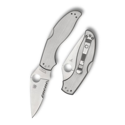 A penge 8Cr13MoV rozsdamentes acélból készült, amely jó korrózióállóságot és kellően tartós élt biztosít. A penge drop point formájú, sokoldalú és jól használható különféle feladatokhoz. A kialakítás full-flat grind (teljes lapos köszörülés), ami precíz és hatékony vágásokat tesz lehetővé. A felület satin finish, amely visszafogott, selyemfényű megjelenést ad a pengének. A markolat rozsdamentes acélból készült, amely stabil és tartós szerkezetet biztosít. A nyitás a Spyderco védjegyének számító Round Hole segítségével történik, a penge biztos rögzítéséről pedig a megbízható Back Lock zár gondoskodik. A hordozást a négyállású zsebcsíptető támogatja, amely jobb- és balkezes, valamint heggyel felfelé vagy lefelé hordási módot is lehetővé tesz.