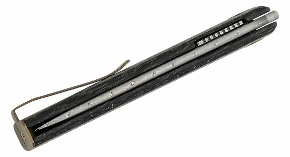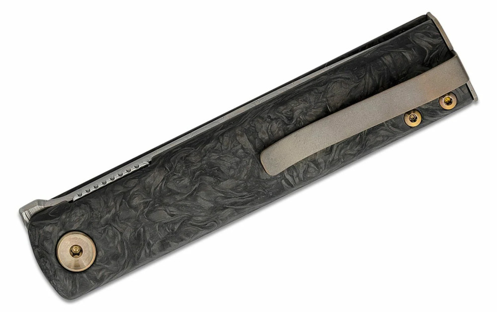 FOX Chnops Black Carbon Fiber Damasteel Riccardo Gobbato által tervezett lenyügőző kialakítású gentleman zsebkés, mely elegáns megjelenésével, minimalista dizájnjával, karcsú profiljával egy szemet gyönyörködtető kompakt méretekkel rendelkező zsebkés. Hogy hogyan kell kiejteni a nevét azt sajna nem tudjuk, de azt igen, hogy az acél leggyakoribb elemeinek a rővidítése áll a névvválasztás mögött - Szén, Hidrogén, Oxigén, Foszfor és Kén angol megfelelői.