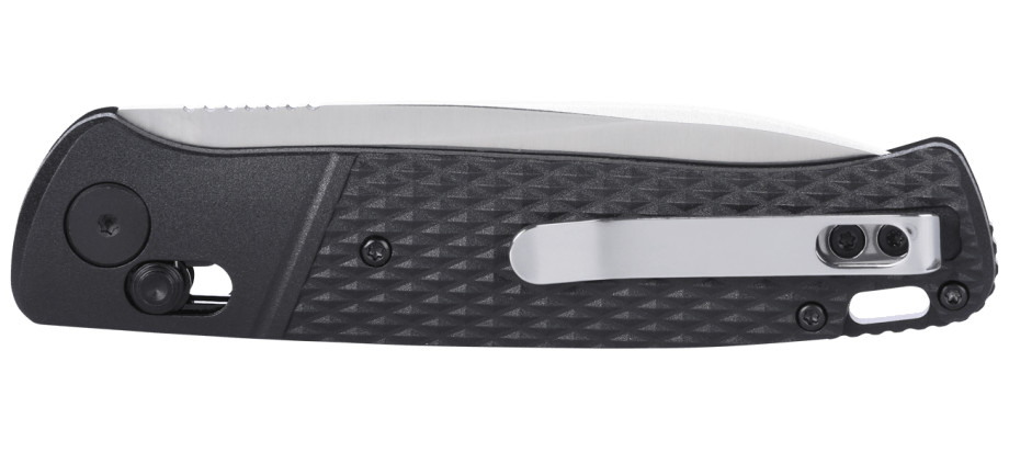 A markolat megtervezésekor a legfőbb szempont a tömegcsökkentés és a tartósság volt, ezért a CRKT Counterpart esetében a választás az üvegszál-erősítésű nylon (GRN) alapanyagra esett. Ez egy modern kompozit anyag (műanyag polimer és üvegszálak nagy nyomáson létrehozott elegye), amely rendkívül strapabíró, ellenáll a nedvességnek és a szélsőséges hőmérsékleti ingadozásoknak. Az ergonómikus kialakítás és a finoman texturált felület garantálja a biztonságos fogást, elkerülve a kéz véletlen elcsúszását munka közben. A CRKT Counterpart zsebkés zárt állapotban mért hossza mindössze 112 mm, ami a kompakt méretével lehetővé teszi a kényelmes hordozhatóságot bármilyen ruházatban. A felhasználói élményt az állítható zsebklipsz teszi teljessé, amely támogatja a hegy-felfelé (tip-up) történő viseletet a zseb peremén, és mindkét oldalra felszerelhető, támogatva a kétkezes használatot.