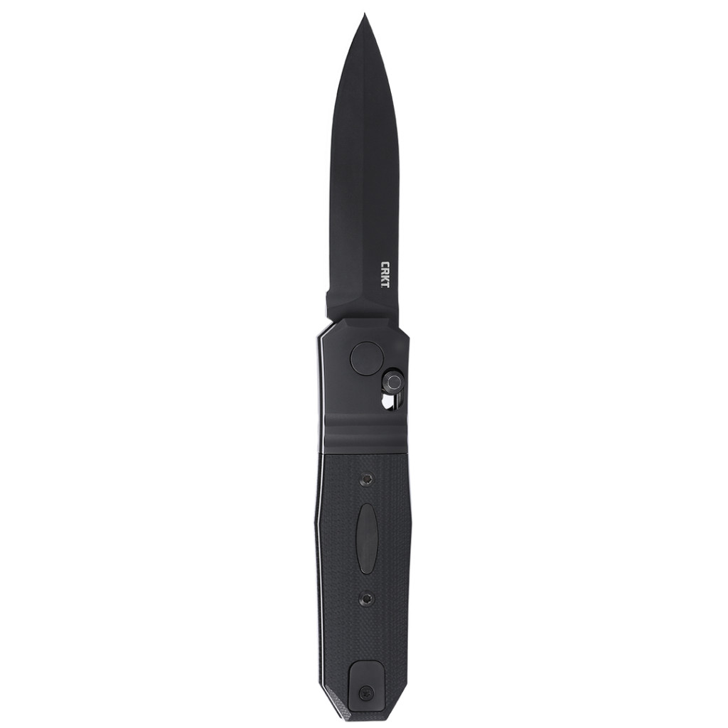 A kés pengéje MagnaCut acélból készül, amely egy korszerű, nagy kopásállóságot, kiváló élmegtartást és magas korrózióállóságot biztosító anyag. A penge spear point formája erős hegyet és kiegyensúlyozott vágási tulajdonságokat nyújt, míg a fekete Cerakote bevonat extra védelmet ad a karcolásokkal és a fényvisszaverődéssel szemben. A texturált G10 markolat szilárd fogást biztosít, így a kés nedves vagy csúszós körülmények között is biztonságosan kezelhető. A Crossbar Lock zármechanizmus két kézzel is könnyen működtethető, és biztosítja a penge stabil rögzítését minden helyzetben. A reverzibilis, mélyen hordható zsebklip lehetővé teszi a bal- és jobbkezes használatot egyaránt, így a hordozhatóság is a felhasználó igényeihez igazítható.