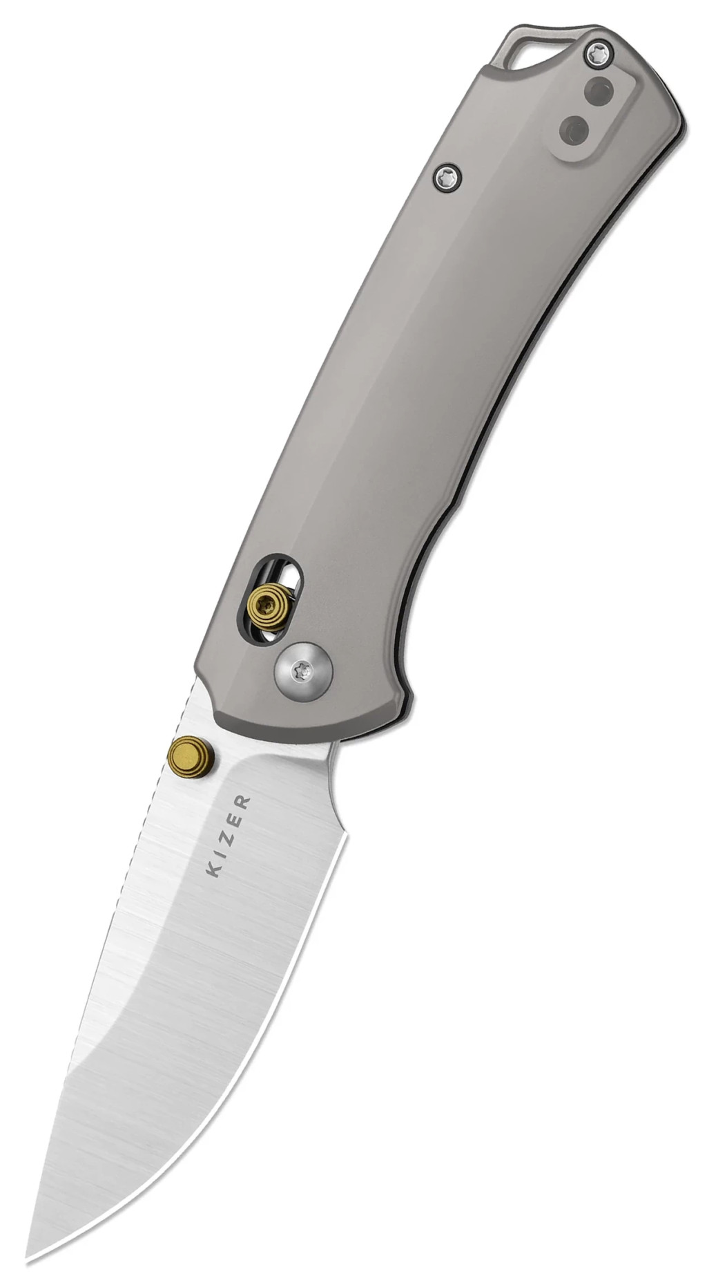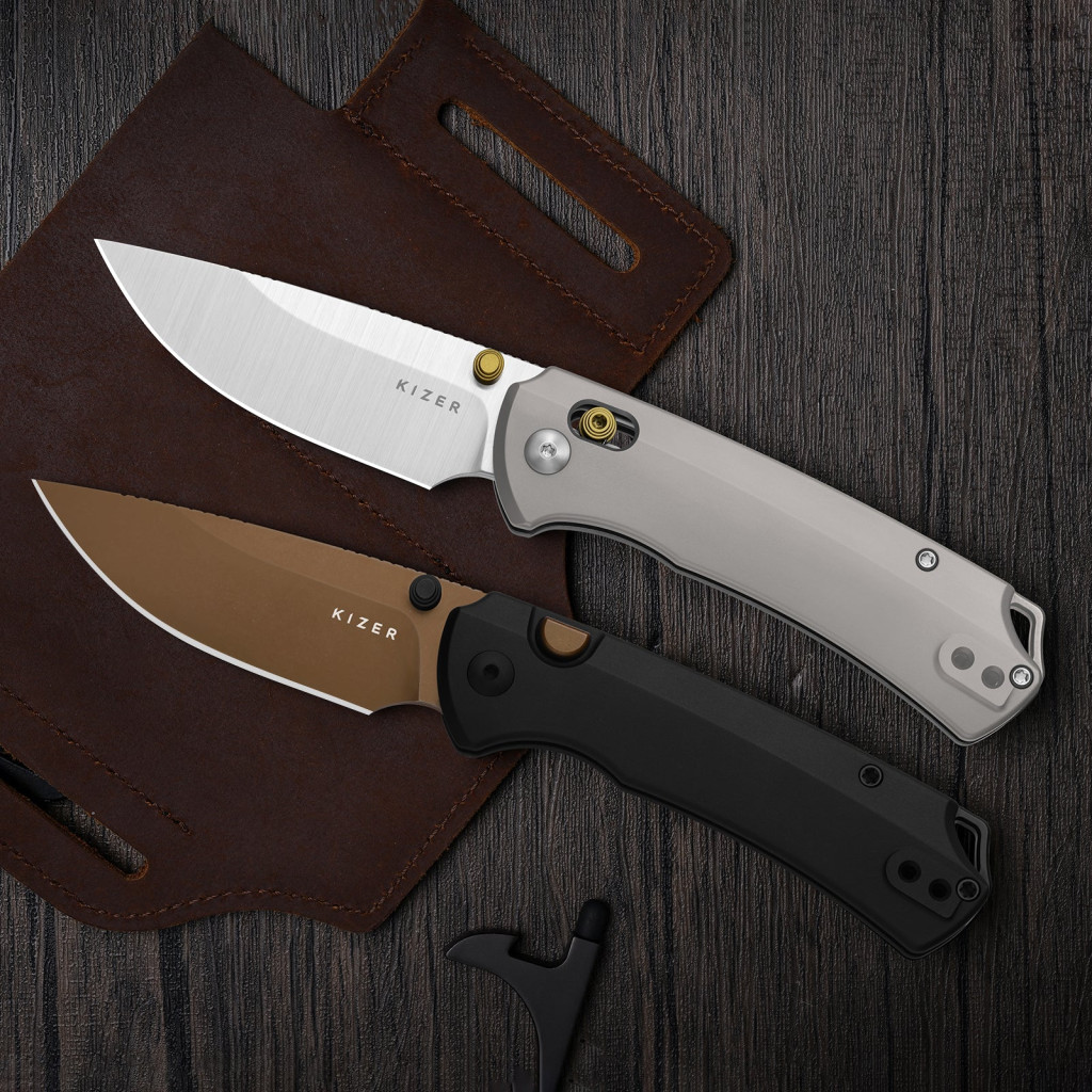 A Kizer T1 CD Gray Titanium markolata teljes egészében csúcsminőségű titán anyagból készült, amely az űriparban is kedvelt tulajdonságai miatt: rendkívül szilárd, mégis könnyebb a hagyományos acélnál, és teljesen ellenáll a rozsdának. A modell igazi technikai újdonsága a Kizer Clutch Lock™ zárszerkezet (egy olyan keresztirányú tolózár, amely két belső rugóval rögzíti a pengét), amelynek különlegessége az állítható rugófeszítés, így a felhasználó saját igényeihez szabhatja a nyitás és zárás ellenállását. A penge működtetése a kétoldali Thumb Stud (nyitószem a pengén) segítségével történik, amely a belső golyóscsapágyas rendszernek köszönhetően hihetetlenül sima, mechanikus súrlódástól mentes mozgást tesz lehetővé. A 111 mm hosszú markolat ergonómiai kialakítása biztosítja a csúszásmentes fogást és a kényelmes, biztonságos irányíthatóságot minden helyzetben.