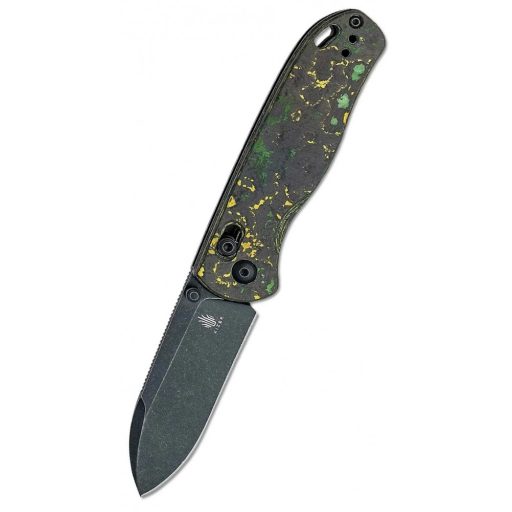 KIZER Drop Bear Clutch Lock Toxic Storm Fatcarbon zsebkés egy praktikus bicska mindennapi használatra. Markolatpanelek egy igen egyedi Toxic Storm fantázianevű carbon fiber anyagból készültek és egy masszív acél kereten fekszenek mely fekete színt kapott. A penge az amerikai 20CV-ből készült melynek igen kiemelkedő a korrozióállósággal rendelkezik és drop-point formával rendelkezik és egy fekete kőmosott felületet kapott.