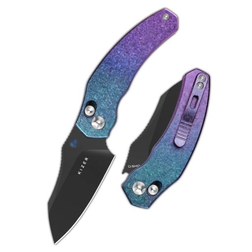 A Kizer Mini Bulldog S45VN Titanium egy elegáns, mégis strapabíró zsebkés, amely a mindennapok során is magabiztosan teljesít. A prémium S45VN acél penge matt DLC-Ultra bevonattal rendelkezik, ami magas kopásállóságot és alacsony fényvisszaverést biztosít. A titán markolat különlegességét a kristályos mintázatú felületkezelés adja, amely egyedi megjelenést kölcsönöz. Kompakt kialakítása és kézre álló formája városi és kültéri használatra is kiváló.