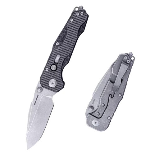 A kés pengéje CPM S35VN prémium rozsdamentes acélból készült, amely kimagasló kopásállóságot, korrózióvédelmet és hosszú éltartást biztosít. A penge kialakítása drop point, vagyis lekerekített hegyet és hosszú vágóélt kínál, amely univerzális vágási feladatokra ideális. A felületkezelés stonewashed (kőmosott), ami matt, kopásálló hatást kelt, és segít elrejteni a karcokat. A markolat anyaga titán, amely opcionálisan karbonbetéttel vagy G10-betéttel kombinálható, így egyszerre elegáns és strapabíró. A nyitás thumb stud (hüvelykujjas nyitógomb) segítségével történik, ami gyors és kényelmes egykezes működtetést tesz lehetővé. A penge rögzítését frame lock biztosítja, amelyhez extra biztonsági zár társul, így megelőzhető a véletlen bezáródás.