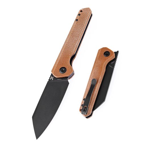 A penge D2 szerszámacélból készült, amely kiváló éltartást és jó korrózióállóságot biztosít. Felületét black TiCN bevonat fedi, ami matt, sötét színt kölcsönöz, és jól elrejti a használat nyomait; egyúttal extra védelmet is ad. A penge formája drop point, a leghatékonyabb kombináció a pontosság és az általános vágási feladatok között. A markolat anyaga barna Micarta, egy strapabíró, üvegszálas bevonatú kompozit, amely biztos fogást garantál még nedves környezetben is. A nyitás a modern front flipper mechanizmussal működik, amelyet a markolat elülső részének megnyomása hoz működésbe. A zár liner lock rendszerű, ami megbízható zárást biztosít, miközben egyszerű és intuitív kezelést tesz lehetővé.