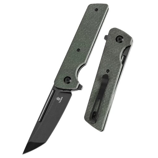 A kés flipper nyitófüllel rendelkezik, amely lehetővé teszi a penge gyors és egykezes nyitását. A nyitást követően a liner lock zármechanizmus gondoskodik a biztos rögzítésről, így a kés stabilan tartható akár erősebb vágások során is. A markolat texturált zöld Micarta panelekből áll, amelyek kellemes tapintásúak és jó tapadást biztosítanak nedves kézben is. A mélyen ülő, tip-up pozíciójú zsebklipsz gondoskodik a diszkrét és biztonságos hordásról. A markolat hossza 105 mm, így kisebb kézben is kényelmesen kezelhető, de hosszabb használat során is biztos fogást nyújt.
