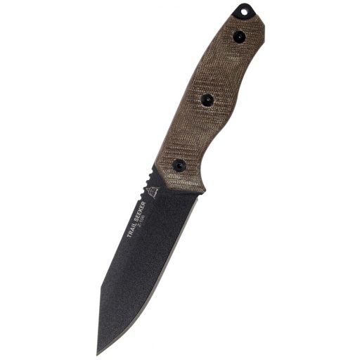TOPS - Trail Seeker 1095 szénacélból készült és a jellegzetes differenciálkeménységgel edzették meg mely azt jelenti, hogy a penge gerince "puhább", míg az él sziklaszilárd, és élét is jól megörzi. Mivel a 1095 nem rozsdamentes acél ezért kapott egy fekete csillogásmentes bevonatot is. A markolata micartából készült és tökéletesen érzi magát akár nedves körülmények között is.