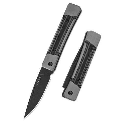 A kés teljes hossza nyitott állapotban 145 mm, zárt állapotban körülbelül 81 mm; a markolat hossza 81 mm. A penge hossza 64 mm, vastagsága 2,5 mm, acélja Nitro-V, keménysége 60–61 HRC. A kés súlya 49 g — ez rendkívül könnyűvé teszi, így zsebben hordva szinte észrevehetetlen. A penge drop-point profilja és flat grind csiszolása biztos vágóéletet és precíz vágásokat tesz lehetővé, a black stonewashed felület pedig előnyös, ha a kés sokat van használva, hiszen nyomot nem hagy túl feltűnően. A G10 + Micarta markolat ergonomikus, textúrált és tartós — a kompakt méretek és alacsony súly együtt kényelmes, mindennapi hordást és megbízható használatot garantálnak. A kialakítás célja egy olyan „gentleman’s knife / EDC” darab volt, ami nem robosztus túlélőeszköz, hanem könnyű, elegáns és praktikus zsebkés — pont azoknak, akik értékelik a minőséget, a kompakt méretet és a diszkrét stílust.