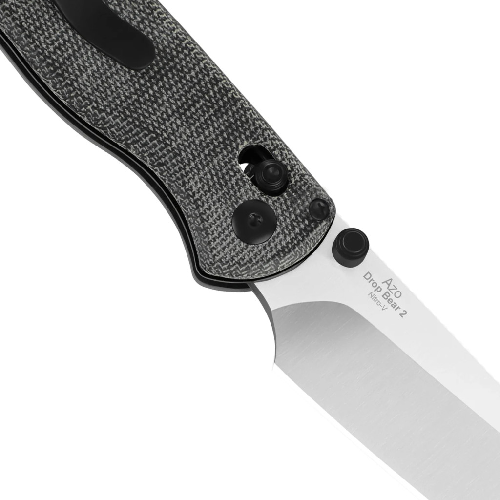 Ez a modell a részletekben is prémium: a penge anyaga Nitro-V rozsdamentes acél, amely kiválóan bírja a kopást és a korróziót, így hosszú távon megbízható társ. A forma sheepsfoot stílusú, vagyis a penge hegyrésze kis ívben lecsapott, és a vágóél végig egyenes – ez a kialakítás különösen jól használható precíz munkákhoz, amikor a hegyrész minimalizálása és a stabil él lehetősége számít. A köszörülés típusa flat grind (síkköszörülés) — tehát a penge teljes szélességében fokozatosan vékonyodik az él felé, így gördülékeny vágást és hatékony anyagleválasztást tesz lehetővé. A markolat Micarta, kompozit laminátum, amely préselt természetes rostokból és gyantából áll — rendkívül tartós, stabil fogást kínál még nedves vagy kihívást jelentő körülmények között is. A hordhatóságot tovább fokozza a mélyen hordható (deep carry) zsebcsíptető-megoldás, amely jobb- és balkezes használatra is alkalmas.